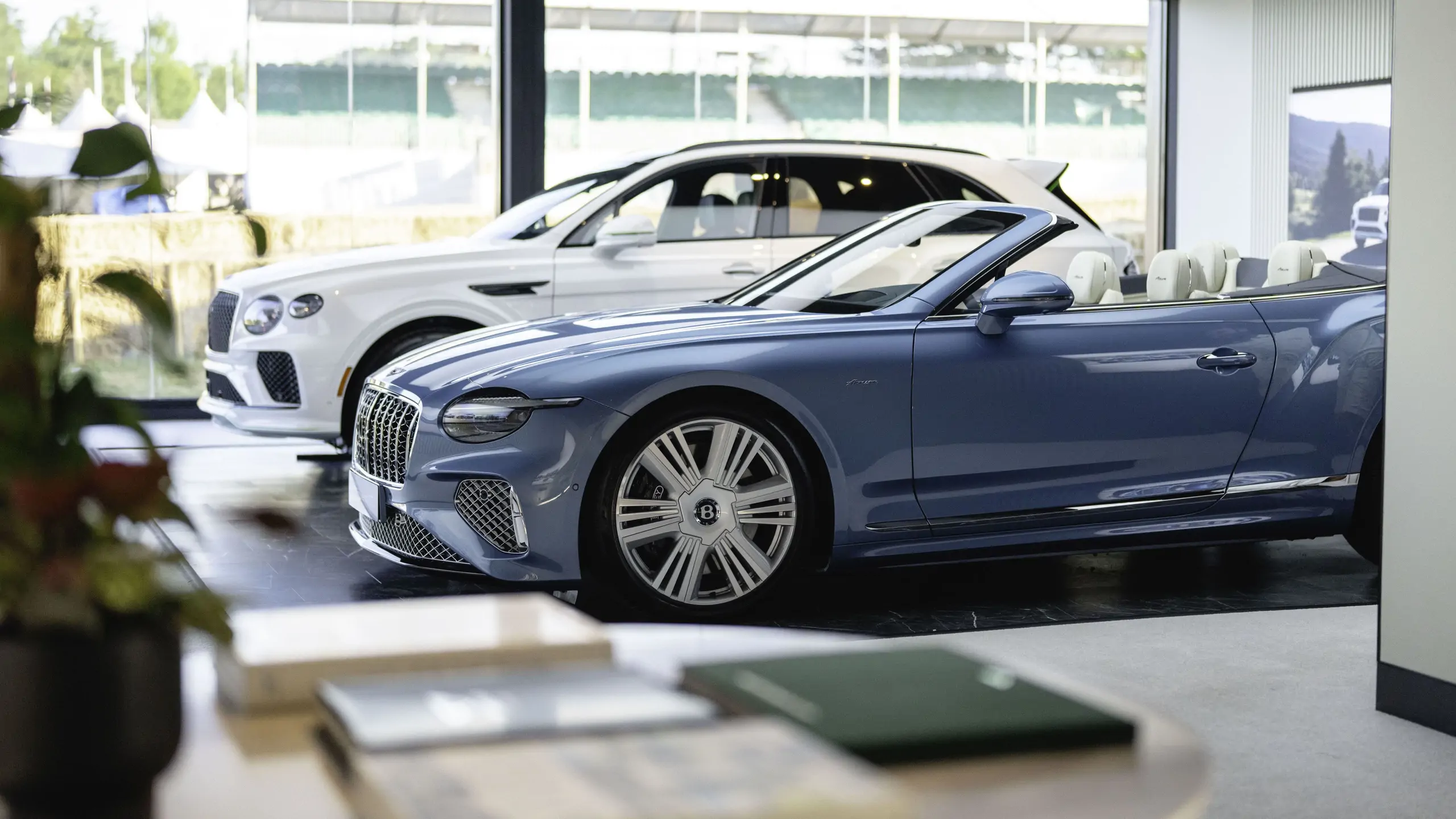 Au cœur de l'entresol, les visiteurs ont pu admirer en première mondiale le nouveau Bentayga Speed. À ses côtés, la nouvelle Bentley Continental GTC Azure a captivé les regards avec sa configuration "bleu ciel et cuir blanc", sublimée par son regard surligné d’un trait lumineux d’eye-liner.